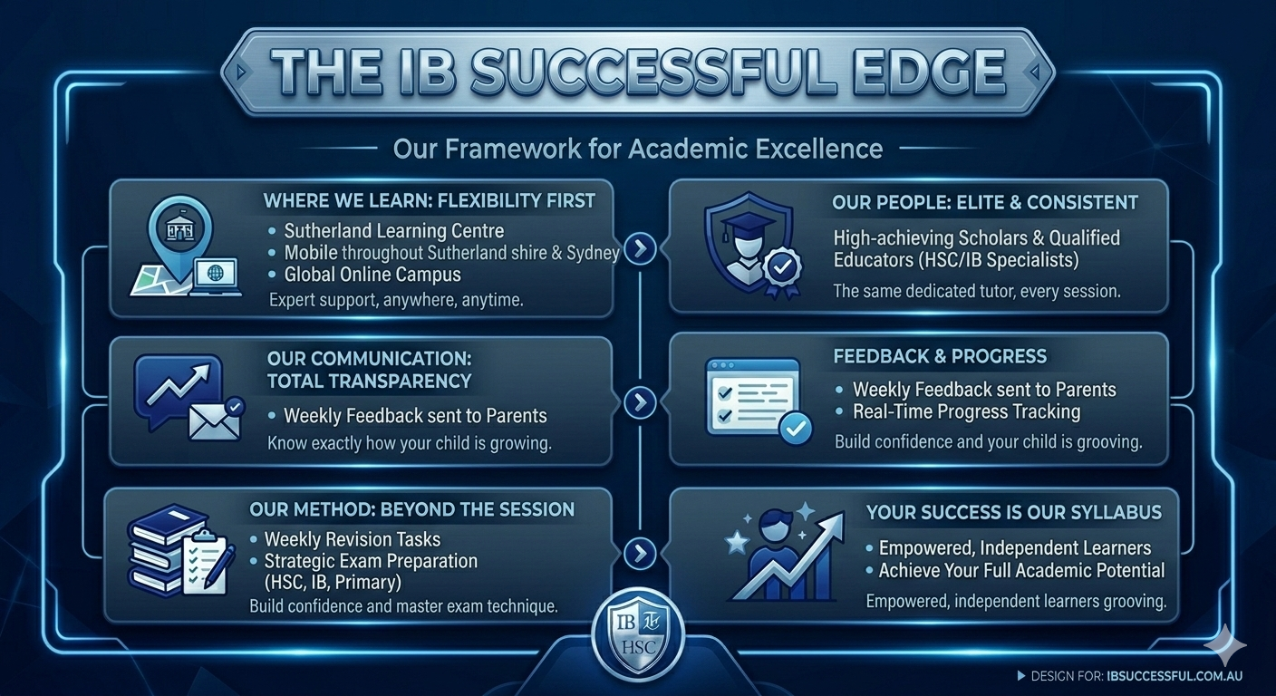 Syllabus-Specific Expertise: Our tutors are specialists who know the NSW Curriculum and IB Diploma requirements inside out—including IA, EE, and TOK support.